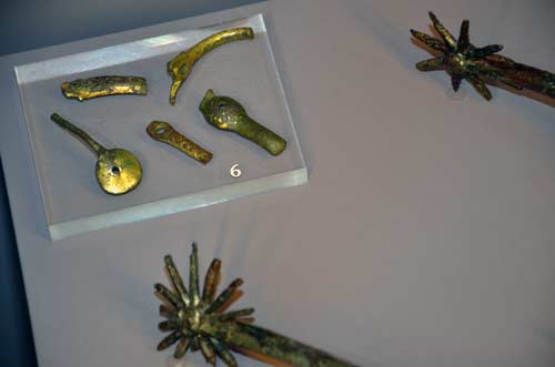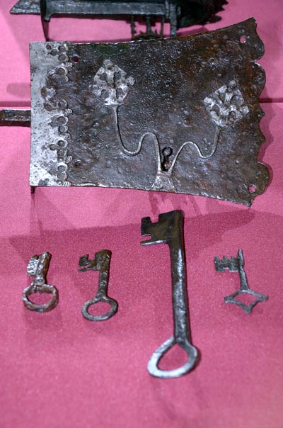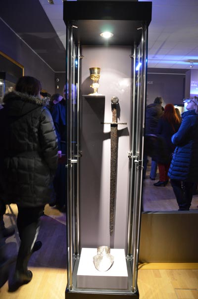 NMS - Otvorenje izložbe 'Vitez, dama in zmaj' - Ostava pozlaćenih iturgisjekih predmeta iz zadnje četvrtine 16. ili početka 17. st. Nazalište: podrum dvorca u Predjami. Foto: VJB.