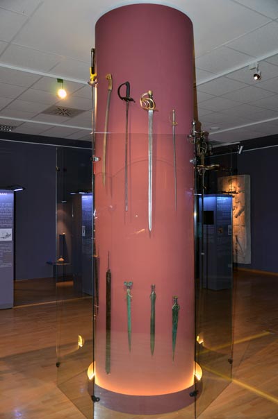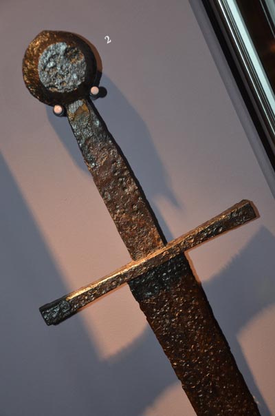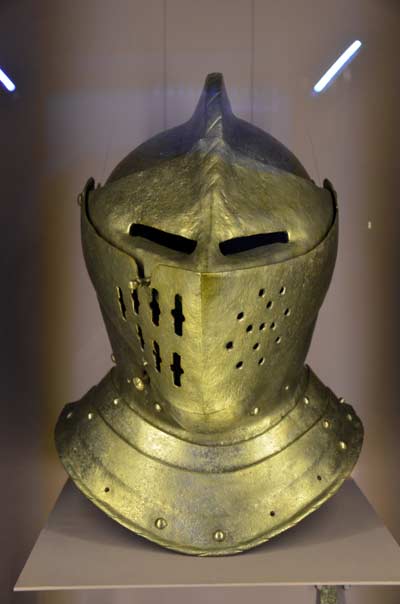 Brojne vitrine sadrže bojno oružje iz različitih srednjovjekovnih razdoblja te oklope. Velika rekonsktrukcija konjanika s kopljem dominira središnjim prostorom prve dvorane. Izložene su slike plemića te reproducirane slike i minijature iz brojnih rukopisa te freski s prikazima vitezova i konjanika.