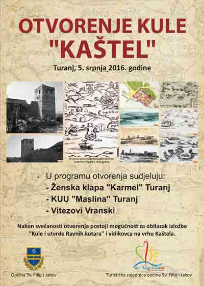 Nakon svečanosti otvorenja postoji mogućnost obilaska kule Kaštela u kojoj će biti postav izložbe KULE I UTRVRDE RAVNIH KOTARA koja je pripremljena u organizaciji Arheološkog muzeja Zadar i Zavičajnog muzeja Benkovac. Izložba je nastala kao rezultat suradnje Arheološkog muzeja Zadar i Zavičajnog muzeja Benkovac koji od 2015. godine surađuju na projektu dokumentiranja kasnosrednjovjekovnih kula i utvrda Ravnih kotara.