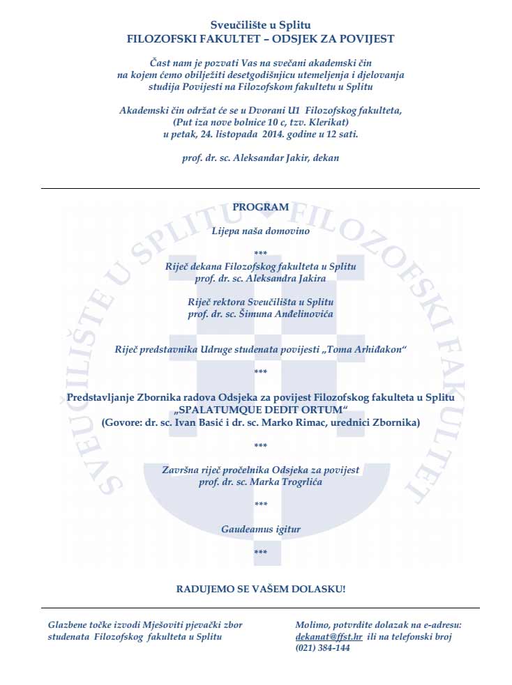 FFST Odsjek za povijest umjetnosti, Split, 2014.