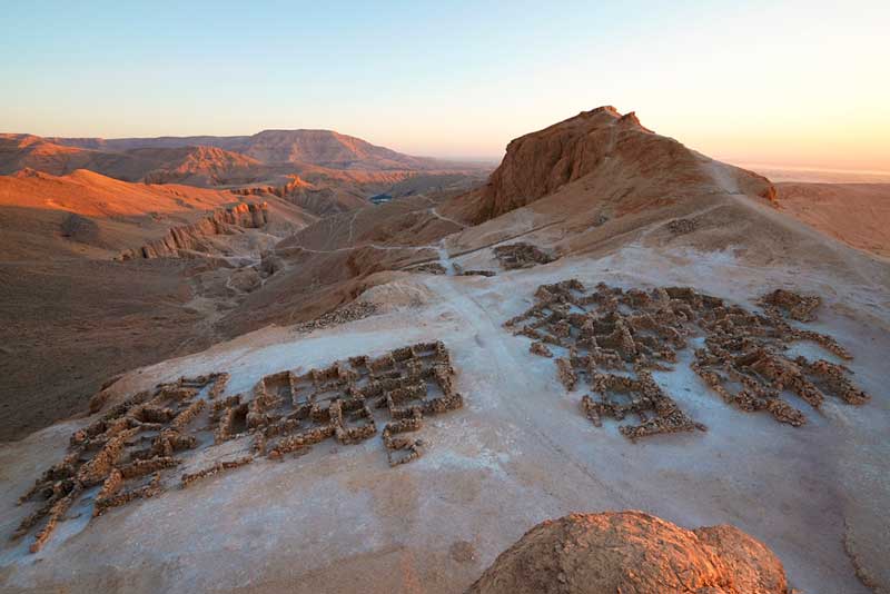 Sončni zahod skozi razpoke stebra rimskega templja.