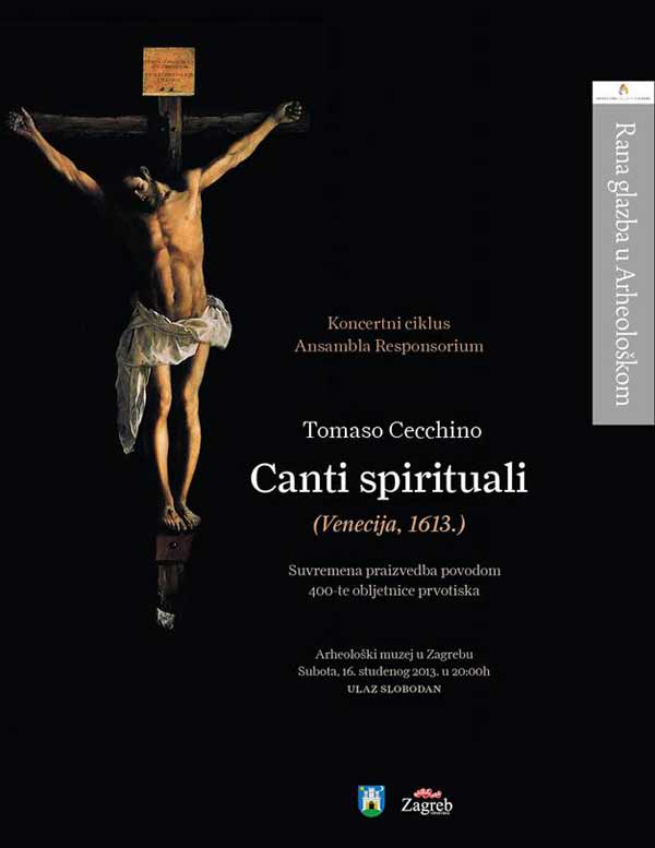 U Arheološkom muzeju u Zagrebu, u subotu 16. studenog 2013. godine u 20 sat, održat će se suvremena praizvedba Tomaso Cecchina ‘Canti spitiruali’ (Venecija, 1613.), Koncertnog ciklusa Ansambla Responsorium, povodom 400-te obljetnice prvotiska.