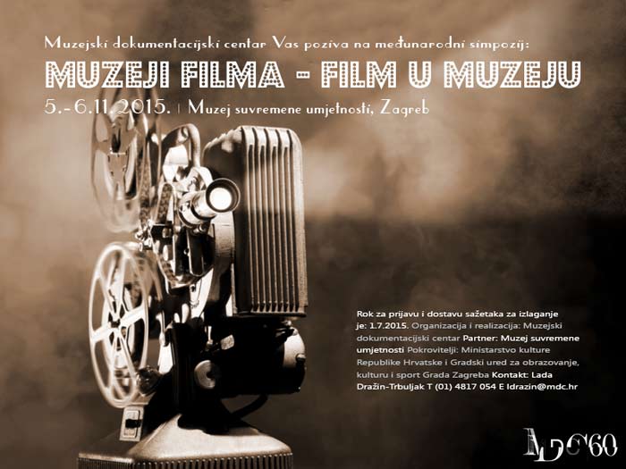 Muzejski dokumentacijski centar objavio je poziv na prijavu za sudjelovanje na međunarodnom simpoziju Muzeji filma – film u muzeju (MFFM), koji će se održati 5. i 6. studenog 2015. godine, u Muzeju suvremene umjetnosti u Zagrebu.