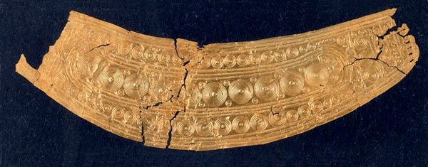 Po svemu izniman, u riznici je pronađen našitak izrađen iz tanke pločice zlata. Našitak je zakrivljenog ovalnog oblika, 17 cm dug i po cijeloj površoni ukrašen utisnutim koncentričnim krugovima, valovnicama i sitnim ubodima. Na rubovima su se djelomično sačuvale rupice, koje pokazuju da predmet prvotno bio pričvršćen kao našitak na nošnji.]